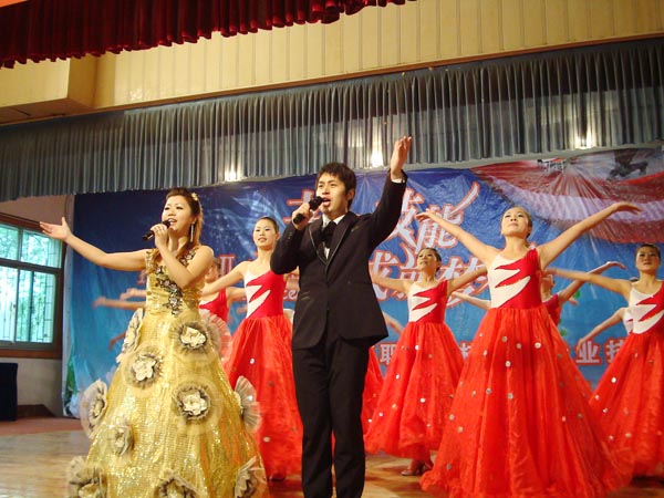 我校廖乜也、刘俊甫老师在市技能大赛开幕式上表演节目