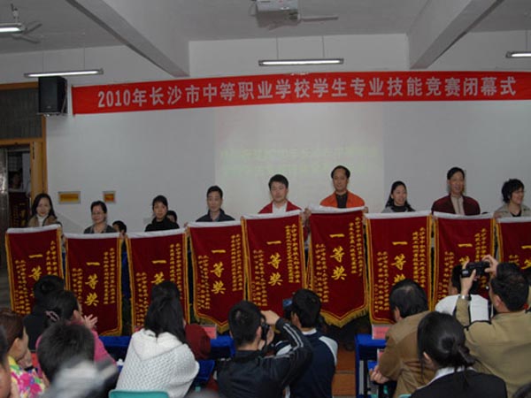 4月11日,2010年度长沙市中等职业学校学生技能大赛圆满结束,我校代表队载誉而归,获得优异成绩,以绝对优势获得了企业网络搭建及应用第一名,园区网互联及网站建设第一名,动画片制作第一名💑,学生张远航⛸、刘杰、柳杨🧑🏻‍🦼⛰、易前、熊文韬、熊凯等获得个人一等奖📰,曹勇👨🏻‍✈️、张师🚣🏽、刘凯等获得二等奖,李浪获得三等奖,宋庆宪、李科、王威、唐卓、丁星明、夏蓉等老师获得优秀指导老师奖🪷,学校获得组织奖🎏。比赛期间🙇🏼‍♂️,市教育局局长彭新🤹🏼‍♂️、副局长王健林等领导,亲临我校展台,高度评价了我校幼师班学生制作的手工作品。