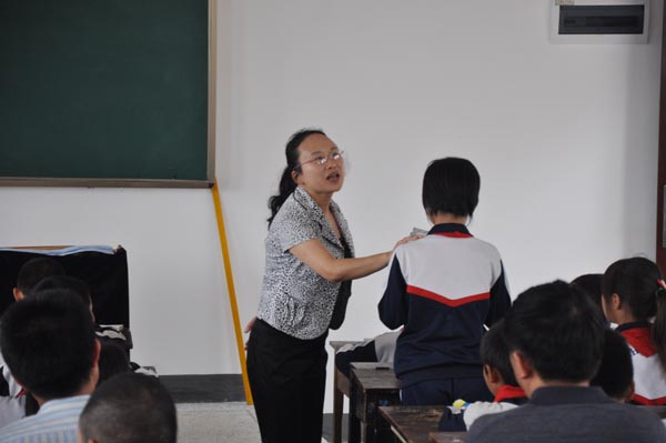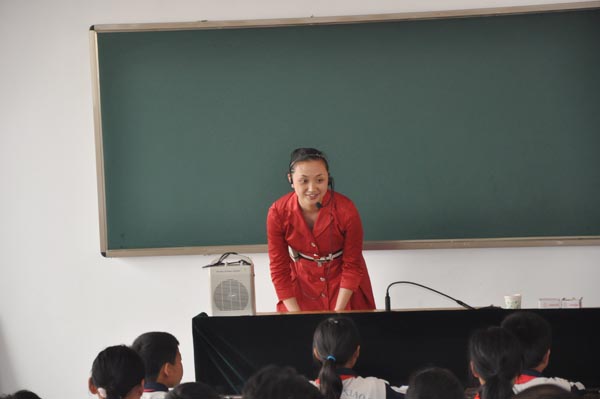 长沙市岳麓区博才学校的市级骨干教师丁丽在上课