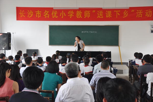 长沙市名优教师送课活动开展至今已有三年多的时间,每次活动深受山区的师生欢迎。它是促进城乡教育均衡发展,引领农村教师的专业成长,探求新课程改革背景下教师培训的新思路、新途径的重要举措。(长沙市小学教师培训中心胡喜鸣)
