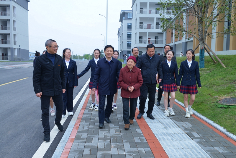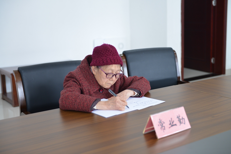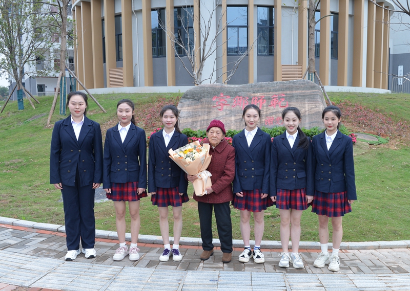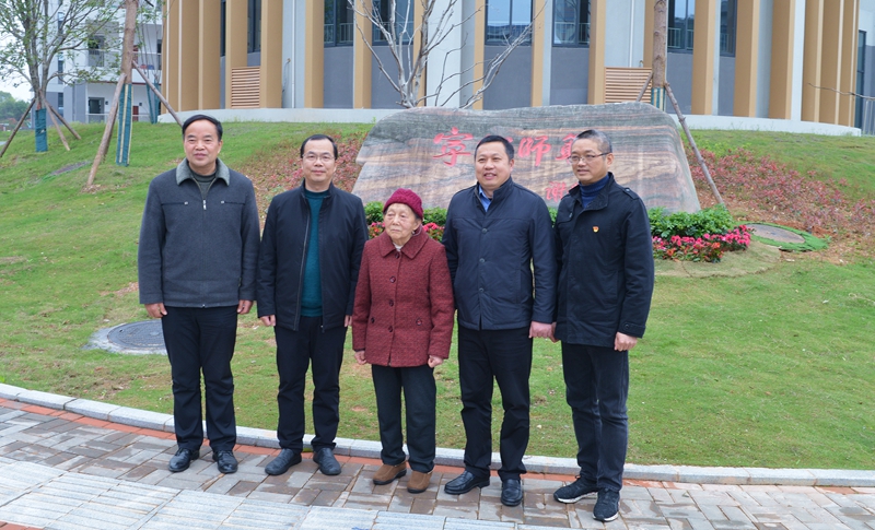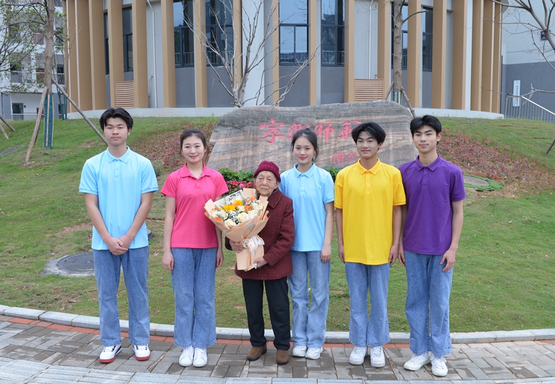 常业勤老师与学校领导在“宁乡师范”校名石前合影留念。分享会结束后,常业勤老师在学校领导的陪同下,重返母校湖南宁乡师范学校旧址,回忆当年学习生活的点滴。89岁高龄的常业勤老师,仍欣然为母校百廿华诞题词“祝愿母校像永不凋谢的花朵越开越艳丽”,表达对母校的深情祝福。