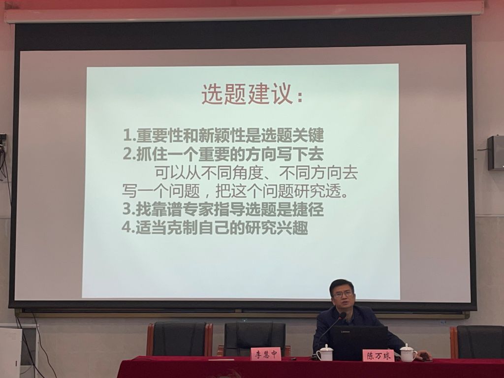 陈万球从科研是自我提升之本👌🏼、学院的科研基本情况👨🏻‍🍳、国社基金的申报体会、论文写作的提升之道四个方面开讲,深入剖析了科研项目选题的标准🎺、原则、技巧以及如何破题、如何撰写研究述评、主要内容、创新点💪🏿📮、研究方法🧝‍♂️、研究基础、参考文献的方法;重点分享了论文选题的重要性、新颖性👨🏽‍🔬😈,给出了选题和投稿建议,为大家指明了课题和论文写作的提升之道。