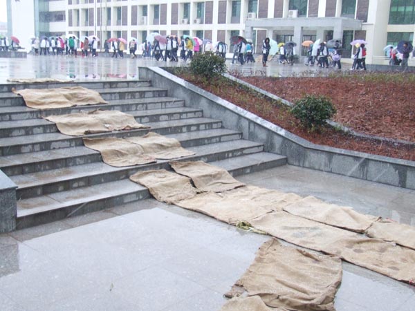 长沙市信息技术学校党委心系学生,迅速行动,于12月15日紧急召开了党委会议,把做好冬季校园安全又一次列入了学校的重要议事日程,部署了相关防滑防冻安全措施🕹,从宁乡紧急调运了麻袋400多个,购买工业盐200多公斤🗑🧚🏼‍♂️。学校党委书记左玉辉🙂、校长郭正良、纪委书记李深山等校领导带领总务科的同志将麻袋铺在学生出行的主要楼梯台阶,将工业盐撒在影响学生出行的主要路段,确保学生出行安全。