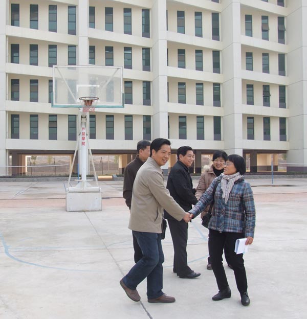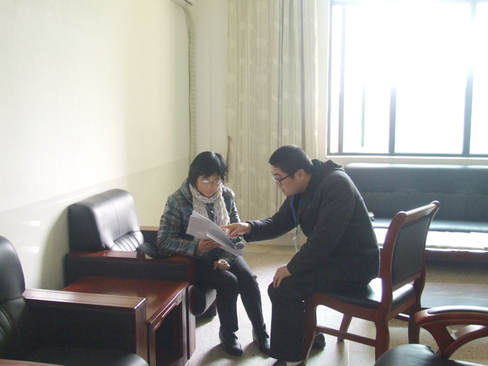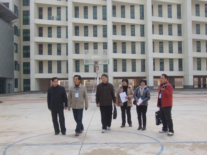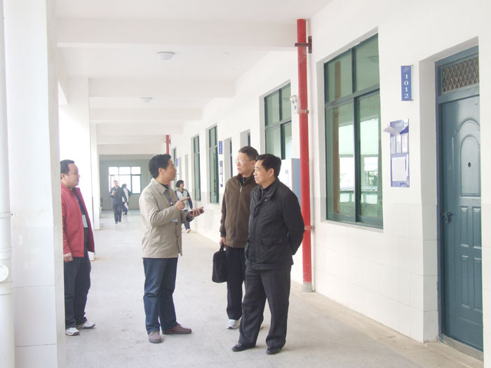 学校校长郭正良同志向检查组的同志介绍学校教育发展情况