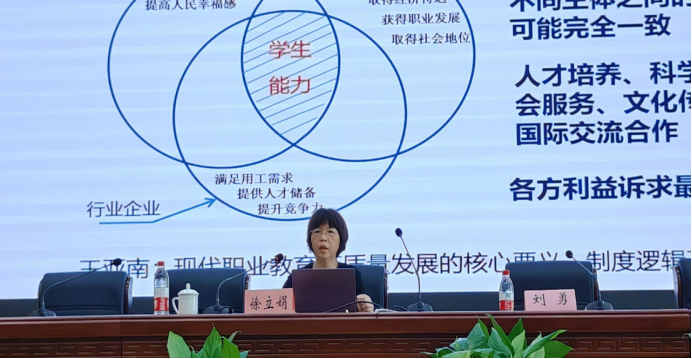 上午,徐立娟从职业教育高质量发展的内涵👨🏼🎨、“双高”建设主要任务、“双高”建设实战体验等三个方面分别阐述了如何用双高引领推动学校高质量发展,强调双高建设任务包括“一”加强,“四”打造🐂,“五”提升,重点提升校企合作水平、服务发展水平🍯、学校治理水平、信息化水平、国际化水平🚣🏿♂️。徐立娟既从理论层面上进行了“双高”建设政策解读与策略分析,又在了解我校省“双高”建设方案的基础上,结合长沙民政职业技术学院国家级“双高”建设的实践经验进行了详细指导,使我们受益匪浅。