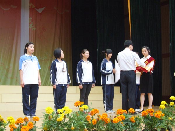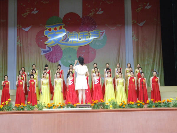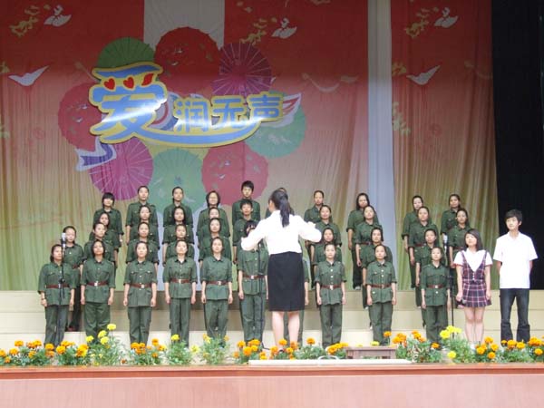 闭幕式上,学校举行了“集合在红旗下”班级红歌会决赛