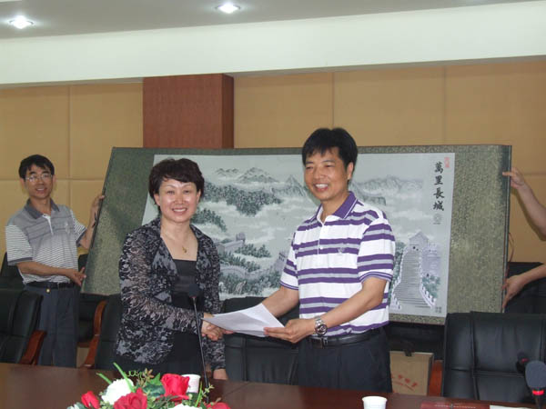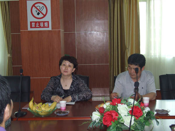 承德工业学校党委书记范海燕(左)代表考察团对我校热情接待表示感谢