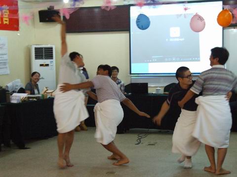 培训结束时文艺联欢中男生精彩反串表演《天鹅湖》