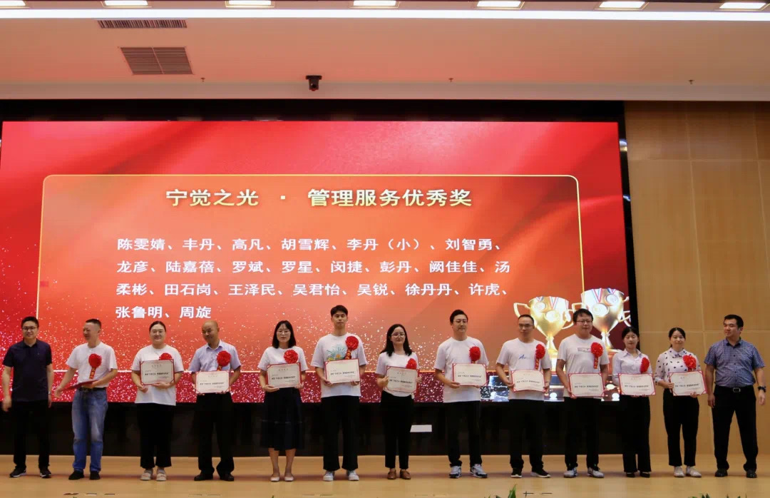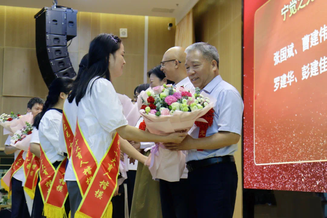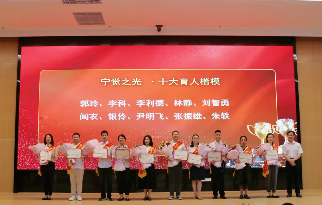 学校相关部门积极筹划,认真准备,在会场外围设置了三处合影留念打卡点,会前安排学生志愿者为每一位教职工送上康乃馨和节日的祝福。其中“宁觉之光·十大育人楷模”这一奖项经过了线上投票和线下竞评,从行政管理、专任教师和辅导员这三类老师中评选出了大家心中的楷模。