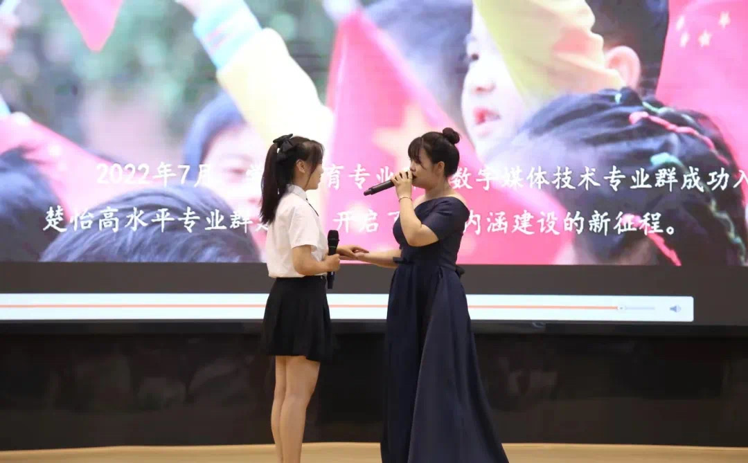 表彰会上节目环环相扣,精彩绝伦。一曲《师者传道》,道尽了师者若水,润物无声。慷慨激昂的朗诵《致敬最美的你》将大会的气氛推向高潮,四位青年诉说着对老师的感激和敬佩,声声感人肺腑,扣人心弦。改编歌曲《是妈妈是学生》使人百感交集,老师们想起了备课的辛酸;想起了学生成功时的激动;还想起了分别时的伤心,句句歌词在学生老师心里泛起层层涟漪,久久不能平息。