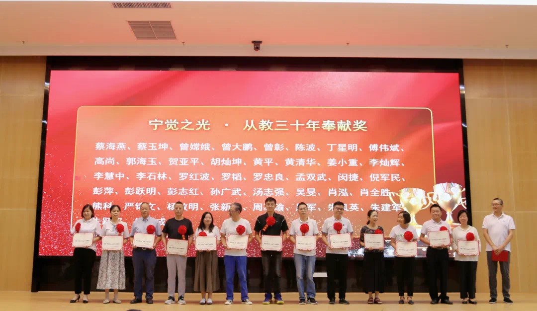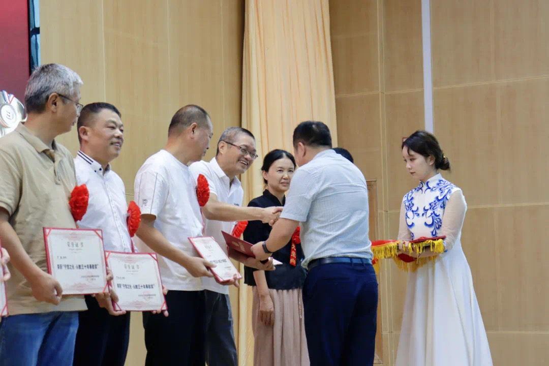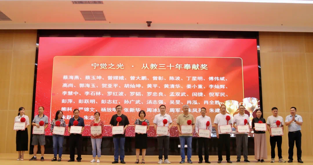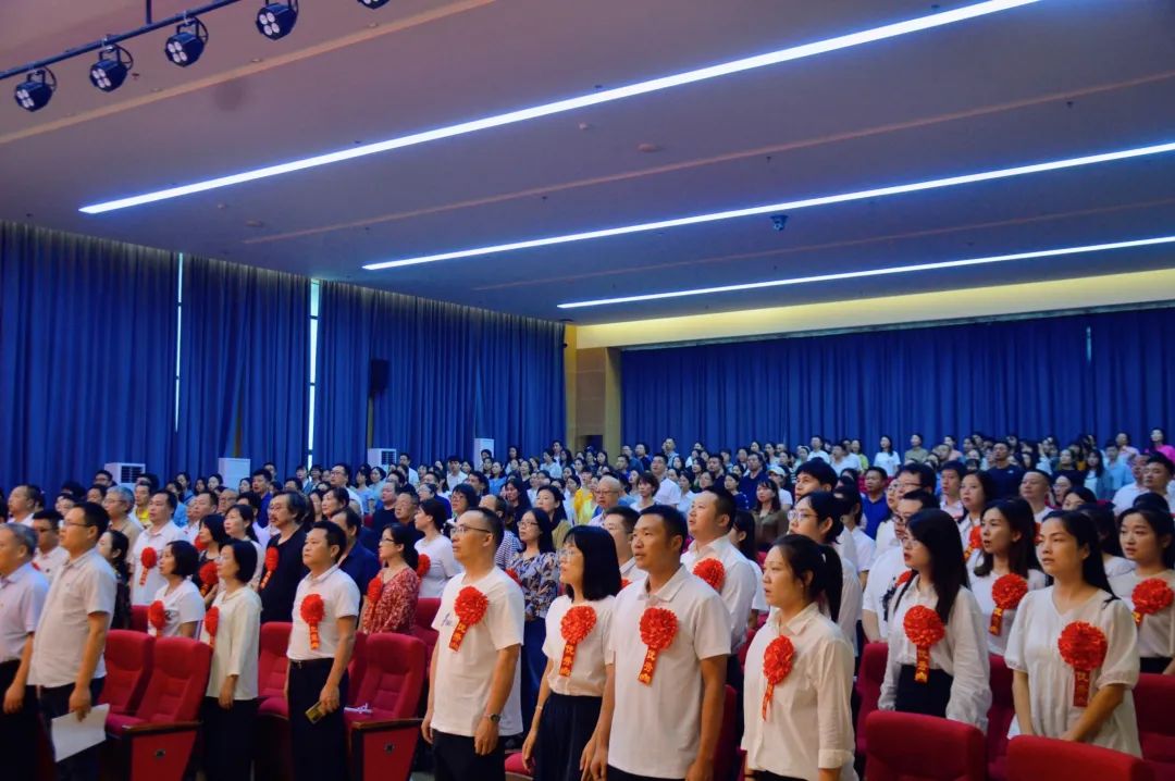 大会围绕主题“躬耕教坛,强国有我”,对2022-2023学年度在学校教学、科研、学生工作、管理、教辅后勤等方面涌现出来的先进个人进行了表彰。李毅宣读表彰决定,校领导为获奖教师颁奖,与会师生向获得表彰的优秀集体与个人送上了热烈的掌声和诚挚的祝贺。此次表彰大会,学校特设置“从教三十年奉献奖”和“立德树人终身荣誉奖”为坚守在教育一线30年的教育工作者和学校退休教师颁发荣誉。佩戴“优秀”胸花的年轻教师一心向着佩戴“光荣”胸花的老教师学,他们一棒接着一棒跑,一茬接着一茬干,由“光荣”向“优秀”的传承,不仅是办学的传承,更是师道传承。