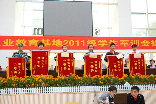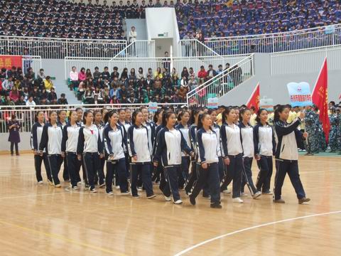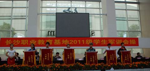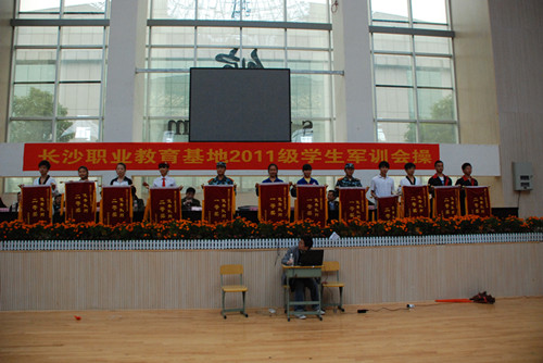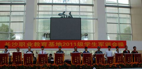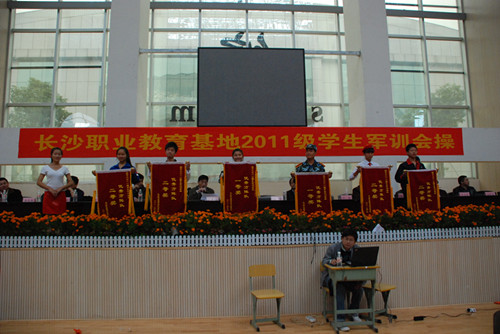 10月26日上午,长沙市职业教育基地2011级学生军训会操比赛在长沙职业教育基地体育馆隆重举行🤽🏻𓀓,来自职业教育基地的六所职业学校代表队参加了竞赛👩🚀🩷。我校代表方阵整齐划一的队列动作、嘹亮的军歌声以及飒爽的军姿充分展示了职高生的风采👉🏿,自选项目表演中我校选送的激情锣鼓训练有素、掷地有声、博得赛场阵阵掌声,赢得评委高度赞誉📋。