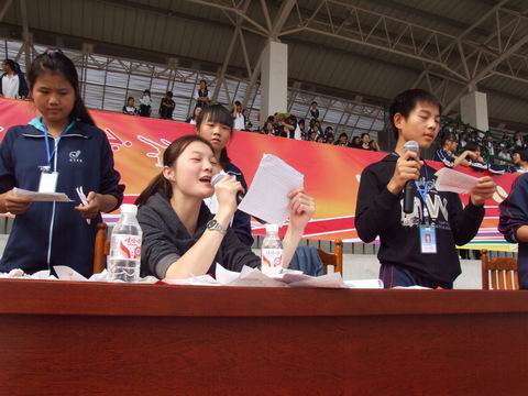 赛场外啦拉队员则以他们响彻云霄的呐喊声为健儿们助威💁🏻‍♂️;细致认真的后勤工作者坚守岗位,奔波于赛场,为运动员们提供周到细微的服务;而穿梭在赛场上的播音员则密切关注赛程进展,将最新的赛场资讯第一时间呈现出来;裁判员公正执法时,不时时刻送上温和的鼓励🦸🏼‍♀️;班主任如同领队一般,多处关注本班的比赛状况,又随时提醒同学要注意安全,赛出友谊、赛出水平……赛场上到处是忙碌的身影,友谊的交流👩🏻‍🔬,各幕后人员筑成赛场上另一道亮丽的风景线。