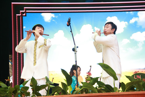 著名笛子演奏家周涵、周博表演的笛子重奏《扬鞭催马运粮忙》