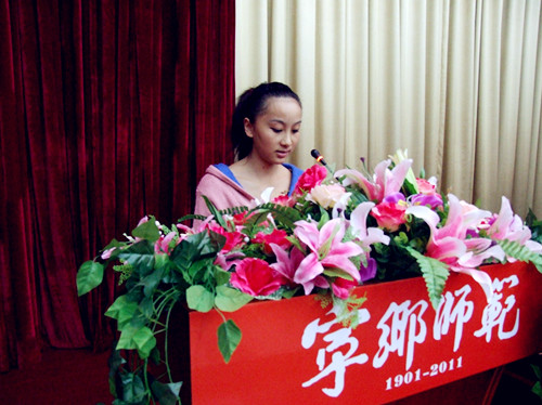 首先教师代表廖庆辉回忆了09级幼师专业三年高中生活的点点滴滴,并期望他们用自己的一片热忱投身幼教事业中,真心爱孩子,用自己的最大努力为幼教事业做出贡献。干一行爱一行。肄业班学生代表杨典典为即将离开母校的学兄学姐们奉献激情的毕业赠言,衷心祝福他们前程似锦,一路走好。接着,高三学生代表李丹发言,一方面感谢学校三年来的辛勤培养,感谢学校领导和老师的深切关心,祝愿母校越办越好,另一方面表示自己在新的岗位上一定严于律己,虚心学习,在工作和生活中虚心向单位的同事学习,不断提升自己。