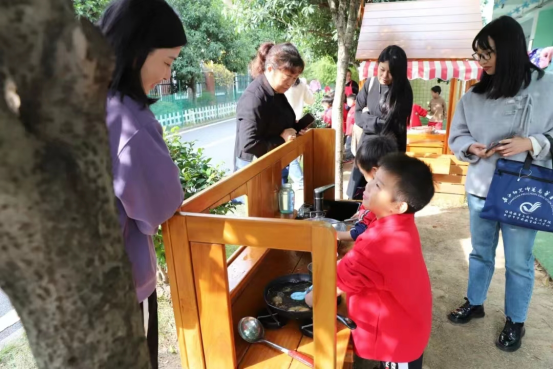 随后,学员们共探乐园,观摩童心幼儿园户外自主游戏🕥。童心幼儿园巧妙利用每一寸土地🧑🏿🦰、合理规划每一块空间🧉,将户外场地变为孩子们的“游乐园”🙆🏽♀️,设置了建构🙋🏽、沙石、骑行、表演♖、美食与养殖等场地,场地间的融合、共用与分隔浑然天成💮,是孩子们“精神自由、游戏自主、心灵愉悦”的乐园🧑🏿🍳,满足了孩子各种游戏活动的需要。孩子们肆意奔跑🚗、快乐嬉戏、勇敢挑战,展现着孩子应有的模样🤜🏼🤸🏽♀️,诠释着游戏应有的魅力,学员们纷纷感叹:农村幼儿园自主游戏竟能如此精彩!