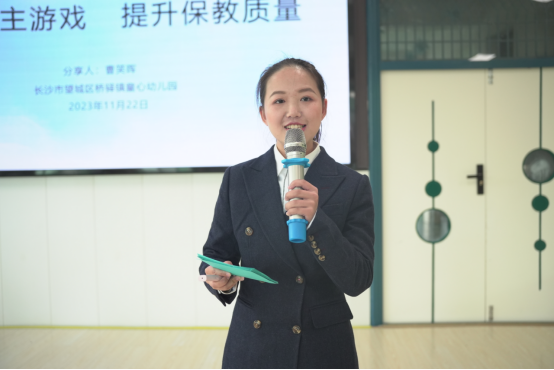 童心幼儿园大班年级组组长肖洒紧扣“安全”与“规则”两个关键点👩👦👦,拍摄幼儿户外自主游戏片段与幼儿一同探讨。肖洒借助提问👐🏻,引导幼儿自主发现问题🧏🏽♀️,并主动寻求解决方法,完善游戏行为,向学员们展示了教师如何在游戏反思环节🧔🏽♂️,巧妙完成幼儿自主游戏“最后一公里”。童心幼儿园教研主任曹笑晖在《赋能自主游戏,提升保教质量》专题分享中,以四部曲的形式阐述了童心幼儿园牢牢把握自主游戏“方向盘”,通过小组试点奏响“先行曲”;大力创设自主游戏环境,从设想到分班落实敲响“行动曲”;深入理解儿童本位教育理念,转变家园教育观拨动“变革曲”;全环境助力儿童发展,提升保教质量谱写“发展曲”🙎🏼,“四部曲”连环演奏出童心幼儿园自主游戏的思与行路径。