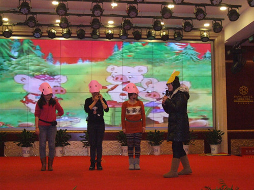 随后,全校教职工以分工会小组为单位表演8个精彩的节目,艺体工会小组表演的舞蹈《扇子大通舞》揭开了晚会的序幕。基础课工会小组小组表演的串烧《南腔北调闹新春》以新颖的创意,写实的手法给观众带来视听盛宴;艺体小组带来的别出心裁的双簧《洗脚城》赢得了在场观众的阵阵喝彩;信息工会小组表演的游艺节目《快乐人生》引起观众的共鸣,掌声雷动;幼教工会小组表演的童话剧《三只小猪》热烈的互动氛围给观众留下了深刻的印象,教务学生工会小组表演的联唱《我们这里还有鱼》等节目,台下观众笑声不断,其乐融融。晚会在音乐老师们悉心打造的《祖国,干杯》中圆满落帷。精彩的节目以及使人兴奋的抽奖活动,令这次团拜联欢会异彩纷呈。此次春节团拜联欢会的成功举办,不仅给全体教职工提供了享受生活、展现特长的平台,同时,也将大家的心连得更加紧密。