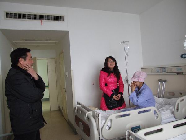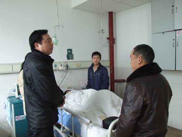 此前,学校党政办、团委在得知两位同学的情况后,迅速在全校老师和各班发出《学雷锋献爱心募捐倡议书》,并立即得到全校学生积极响应,同学们纷纷献出友爱之手。看望期间,李深山书记一行询问了他们目前的身体状况,并鼓励两位同学要坚强面对疾病和困难,积极配合医生的治疗,争取早日重返校园此前。 “谢谢学校、谢谢老师、谢谢同学们”,临走时两位同学及家属与学校老师含泪惜别,表示一定会以优异成绩来回报所有关心、支持、帮助他们的老师和同学,为社会和国家作出努力贡献。