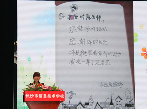 11月9日,长沙市职业教育教书育人先进事迹报告会在我校汇美馆隆重举行。来自长沙市职业教育一线的6位优秀教师做了事迹报告🫷🏿,其中就有我校优秀教师陈郁。湖南省教育厅职成处副处长周芳友🛋,长沙市教育局党委书记王小平、局长王建华𓀒、副局长王建林以及其他班子成员出席了报告会🤾🏻♂️,来自全市职业教育20多所学校的领导、优秀教师代表参加了报告会。我校全体教师🧒🧏🏿、部分学生代表聆听了优秀教师的精彩报告。