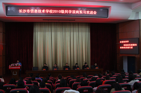 12月3日😍🧆,我校2010级毕业生顶岗实习欢送会在汇智厅隆重举行,学校领导班子成员出席,全体2010级毕业生参加,会议由学校纪委书记李深山主持。