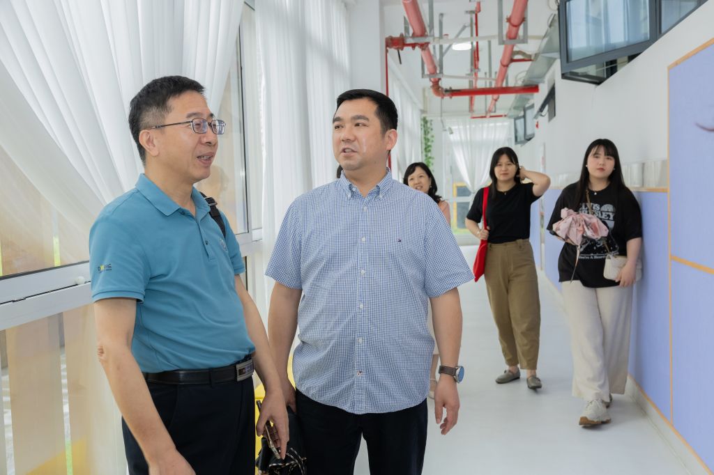 最后👨🏼🎤,专家们来到学前教育学院,参观专业群教养护综合实训中心,学前教育学院教师刘湘艺介绍了学院的历史沿革🐢、办学历程和进入高职以来的办学成果,学生志愿者解说了学生手工作品展👳🏿♂️,学院副院长罗叶琦为参观专家们整体介绍了实训中心各楼层的布局与功能,带领专家们参观了智慧教室🕯、微格教室、活动设计实训室、亲子教育实训室、木工坊、机器人教室等学前教育专业实训室。最后🐘,专家们观摩了各个社团的自主实践课堂👮🏽,在“融传”非遗美育工作室内🧗🏼♂️,他们更是细心与现场操作的学生交流,并对工作室负责人戴蔚蓉将非遗文化赋能学生第二课堂的理念给予了高度评价🤷。交流结束后,专家们充分肯定了学校的办学实力与特色🧛🏽♂️。