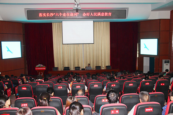 6月3日,我校在汇智厅召开全体教职工大会,全体教职工观看TCL集团李东升《鹰的重生》访谈录,学校校长郭正良就对学校落实长沙“六个走在前列”大竞赛活动进行了动员,并对“办人民满意教育大讨论”活动进行部署。