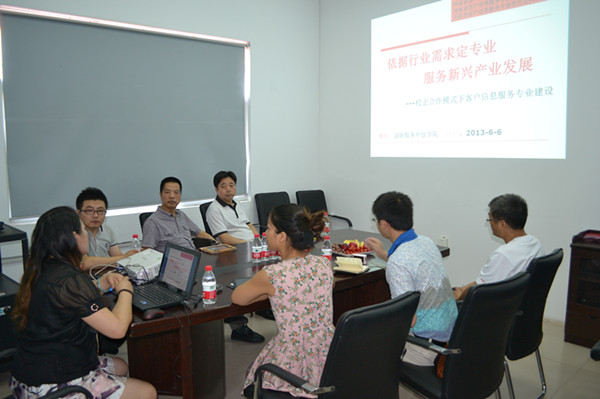 学校考察组听取洛阳服务外包学院冯院长的专业建设报告
