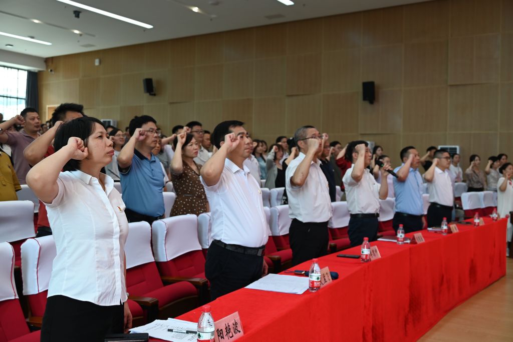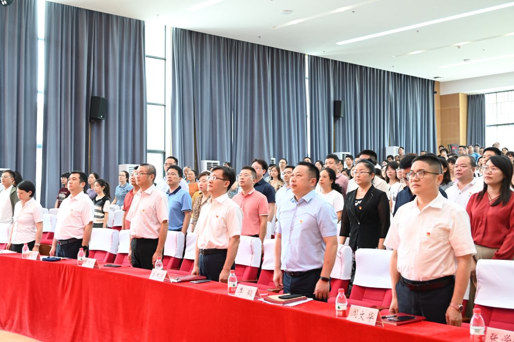7月4日🧛🏽🙏🏼,为庆祝中国共产党成立103周年,我校在图书馆报告厅召开2024年“七一”表彰大会暨全校教职大会,学校领导班子🩱🚍、全体教职工参加。会议由党委委员、组织人事处处长张学锋主持🖋。