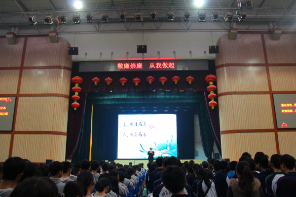 为大力加强廉政文化建设,积极推动廉政文化进校园,促使广大师生树立“敬廉尚洁憎腐”的价值观念,形成良好的廉洁自律氛围,我校10月21日于汇美馆举行“敬廉崇廉,从我做起”的国旗下讲话。纪委书记李深山出席会议并发言,全体师生参加了会议👷🏼♀️。