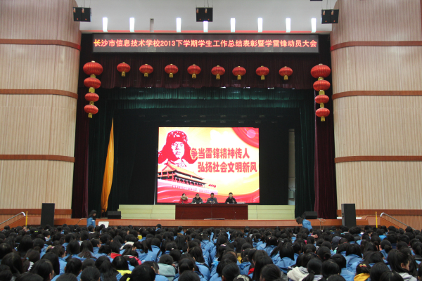 3月5日下午🆒,长沙市信息技术学校汇美馆内喜气洋洋,掌声不断🦣,这里正隆重举行2013下学年学生工作总结表彰暨学雷锋动员大会。会上6️⃣,表彰了2013年度各项学生工作中涌现出来的优秀个人和优秀集体,极大激发了全体师生争先创优♌️、提升教育教学质量的热情。出席本次总结表彰大会的领导有校长郭正良,校长助理兼学生科科长周文华,团委书记兼学生科副科长周曦,学生科副科长宋黎黎🏃‍♀️。本次大会由学生科副科长宋黎黎主持🙇🏼‍♀️。