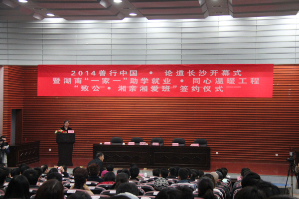 3月12日上午,由湖南中华职业教育社、致公党湖南省委组织的2014善行中·论道长沙开幕式暨湖南“一家一”助学就业·同心温暖工程“致公•湘亲湘爱班”签约仪式在岳麓山下的湖南大学举行🥽。