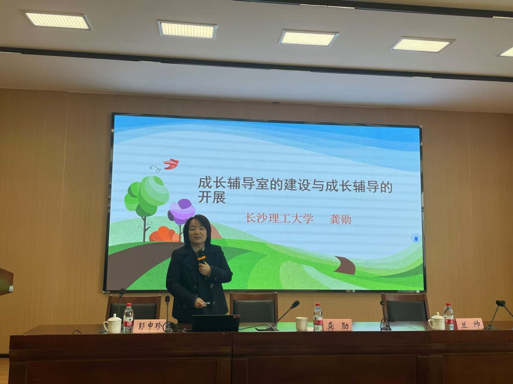 11月14日,我校特色成长辅导室启动仪式暨培训大会在道馨楼503举行,特邀中国心理学会注册督导师、注册心理师😿、长沙理工大学心理健康教育中心教师、湖南师范大学教育学院硕士生导师龚勋前来为我校指导工作🎦。学生工作与安全保卫处处长兰帅,各院德育副院长、心理专干,校心理发展指导中心(以下简称心理中心)教师,全体专兼职辅导员以及心理委员代表参加了启动仪式🧜🏽♂️。仪式由心理中心教师彭申珍主持🧞♀️。