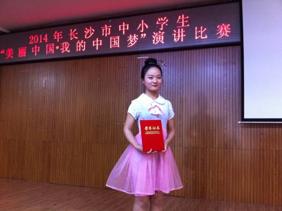 我校王惦同学荣获长沙市中小学生“美丽中国•我的中国梦”演讲比赛一等奖