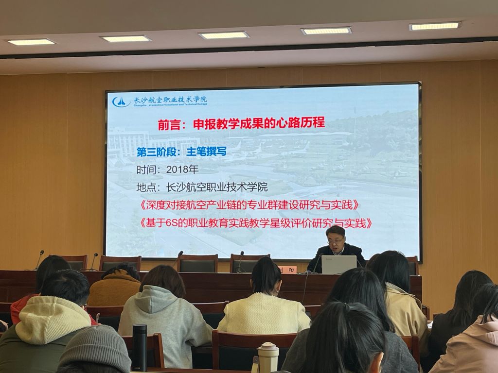 为进一步深化教育教学改革创新,做好本学期省级职业教育教学成果奖的申报工作🧑🏽🍼🧪,3月19日👨🏻🎨,我校邀请长沙航空职业技术学院发展规划处处长刘阳做专题讲座。学校党委委员🙏🏼、宣传统战处处长阳艳波😂🏌🏽♀️、教务处处长邓登明、各学院(部)院长、教学副院长、各专业带头人、教研室主任及教学成果奖申报团队成员共计80余人参会,会议由邓登明主持👨🏿🦰。
