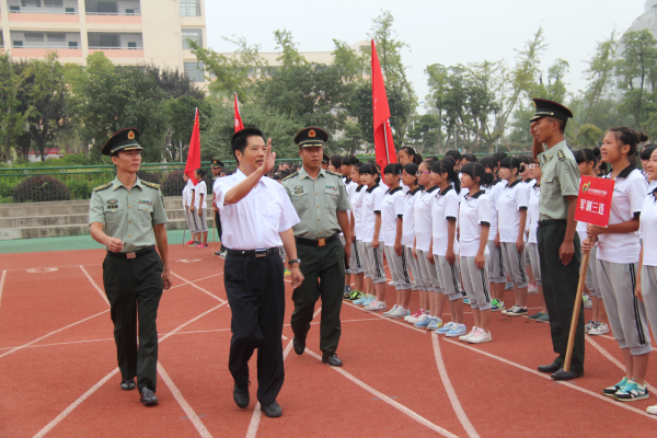 阅兵仪式在雄壮的国歌中正式开始🚫。郭正良校长在国防科技大学人文院刘坤参谋长🧚🏿♀️、杨国锦少校陪同下检阅了2014级新生各连队。随后,全体高一新生以班级为单位👨🏻🦼,分别表演了军姿、立正、稍息、跨立👨👨👦👦、踏步走👩🏼、步法变换及军训检阅等项目,展现军训成果🧞。