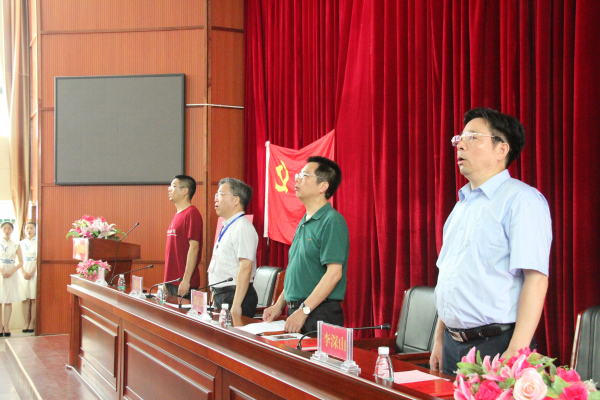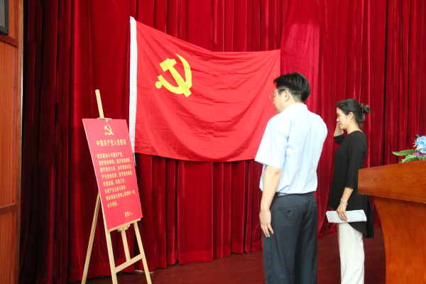 仪式在雄壮的国歌声中拉开了帷幕。党委书记张国斌宣布吸收预备党员决定。在纪委书记李深山的领誓下🚶,新党员和老党员面向鲜红的党旗庄严宣誓。新党员代表彭繁珍同志作了发言。学校副校长李慧中宣读了优秀党员表彰通报。信息党支部、艺术党支部被评为先进基层党支部,张学锋等3位老师被评为优秀党务工作者🧏🏻♂️🧑🏽🚀、廖小勇等20位老师被评为优秀党员。优秀党员代表肖琼老师发表感言🈷️💓。
