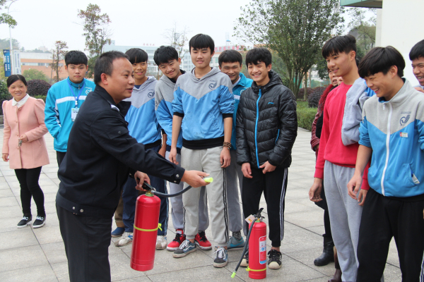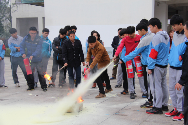在操场上早已摆放好了圆筒作为火源,保卫科科长赵万年为同学们进行了灭火器材的简单介绍,对灭火器的分类和灭火原理进行了详细讲解,同学们受益匪浅。随后老师和学生的代表分别进行了灭火实战演练,随着火焰被扑灭响起了同学们热烈的掌声。