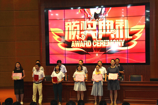 9月9日下午🤱🏽,我校全体教职员工和部分学生代表齐聚汇智厅,举行“甘守三尺讲台😁,争做‘四有’老师”师德师风建设暨2016年教师节总结表彰大会。学校领导班子出席表彰大会🥣,党委书记张国斌主持表彰大会💇🏿。