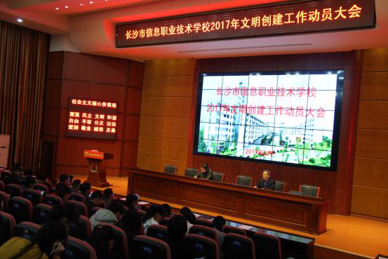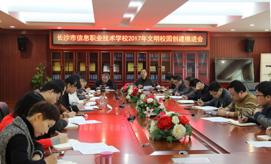 为构建文明和谐校园🤾🏻♂️,争创省级文明单位,2月20日上午💃🏼,长沙市信息职业技术学校召开2017年文明校园创建工作推进会,会议由党委书记张国斌主持🕧,全体中层干部以上参加。