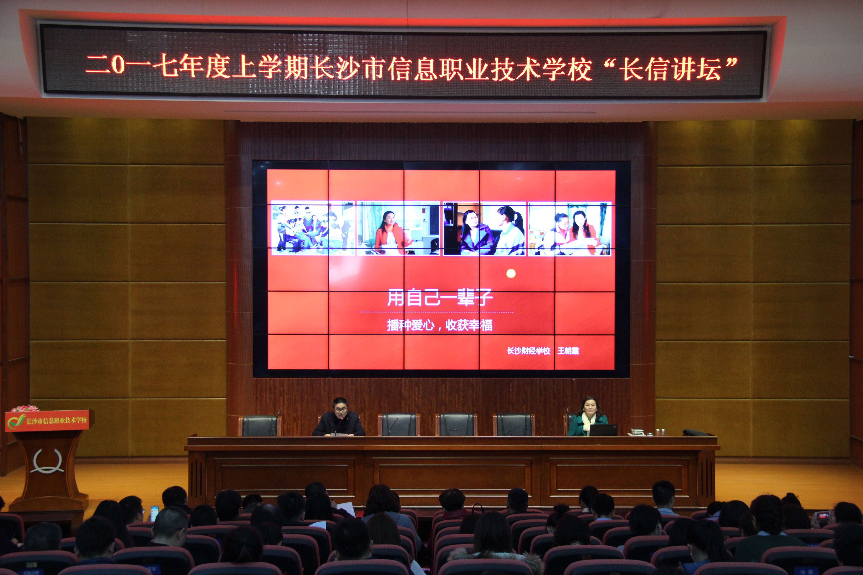 3月27日下午,学校在汇智厅举办“长信讲坛”,国家级骨干教师,湖南省首批教授级高级教师王朝霞老师应邀来校做《用自己一辈子🥢,播种爱心,收获幸福》专题讲座,会议由副校长周文华主持。