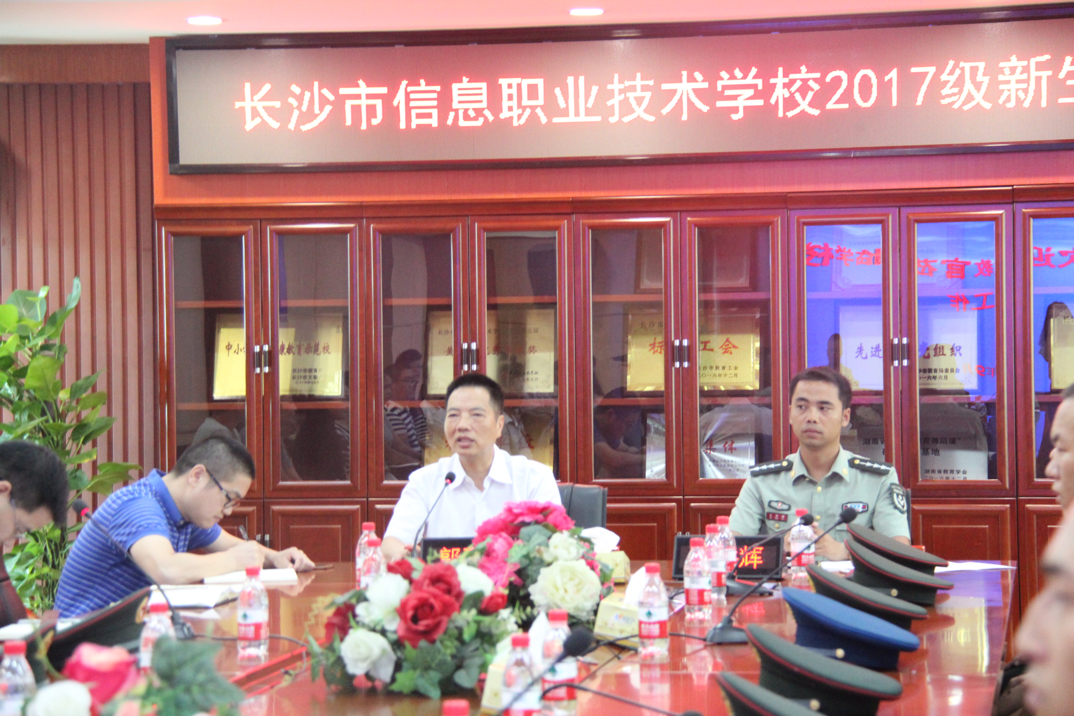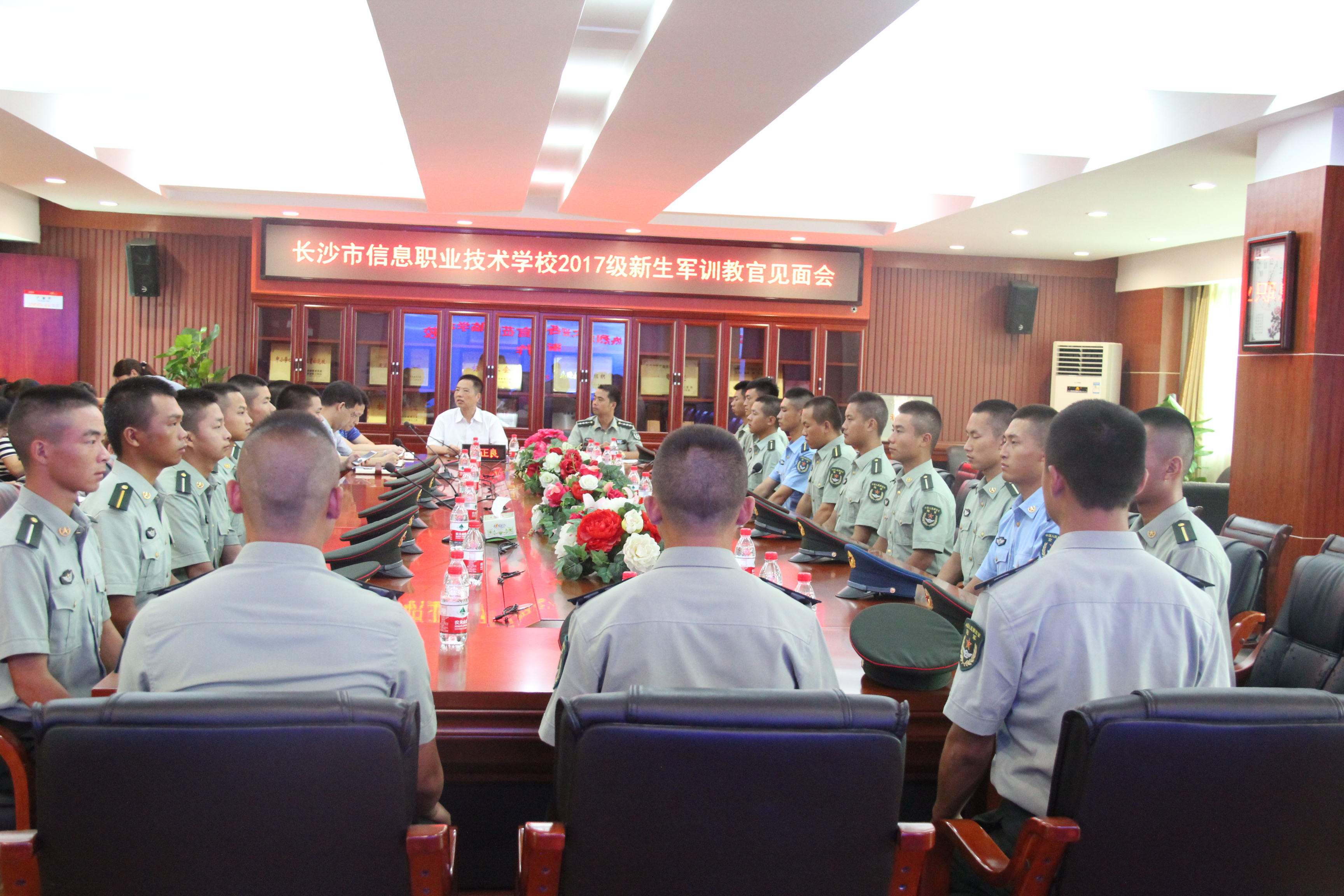 2017年9月3日下午♕,我校2017级新生军训教官见面会在广益厅隆重举行。校长郭正良、长沙市新训团总教官朱洪辉、副校长周文华👨👨👦、学生科科长周曦、长沙市新训团所有教官及2017级全体新生班主任参加会议,见面会由学生科副科长彭亮主持。