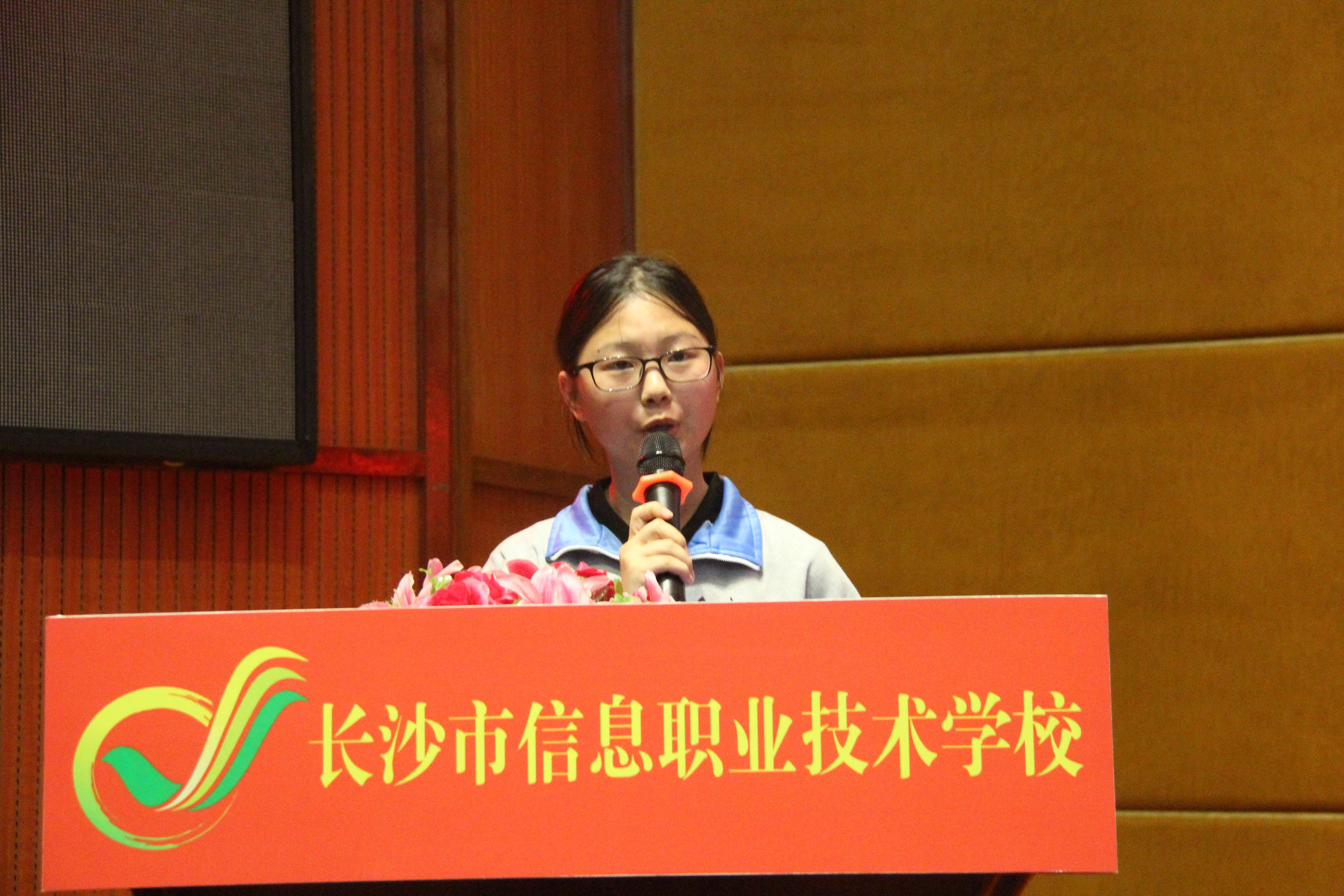 1605班黄莹同学代表学员发言,表示自己将时刻以党员的要求严格规范自己,争取早日入党。