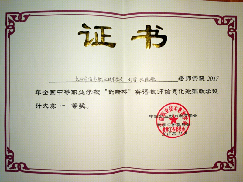 2017年全国中等职业学校“创新杯”教师信息化教学体育与健康课程说课和英语微课设计大赛于11月23日、29日分别在南京和成都落下帷幕🏇🏿。我校王潇翔老师获体育与健康课程说课大赛一等奖,刘倩🍖、张振雄老师获英语微课设计大赛一等奖。
