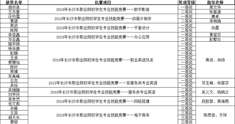 在刚刚结束的2018年长沙市职业院校学生技能竞赛中🍗,我校选派的26名选手在9个项目中斩获一等奖14项、二等奖8项🦸🏽♀️、三等奖4项,其中网络搭建、数字影音🧍♀️、动画片制作以及非服务类英语4个赛项顺利晋级省赛。