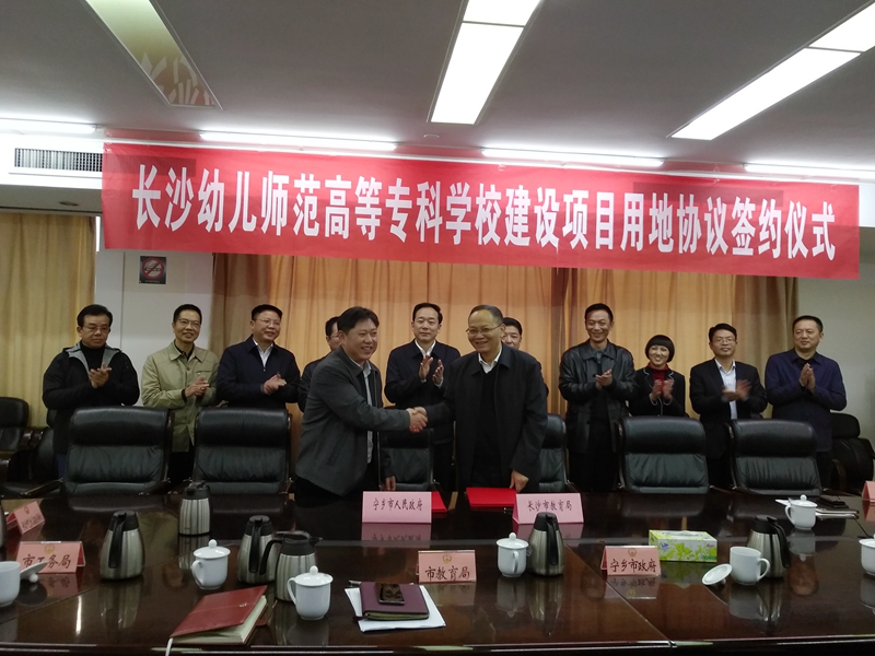 签字仪式由厉江华主持,孔秋生介绍项目基本情况;陈德奇💊、卢鸿鸣分别代表宁乡市和长沙市教育局在项目协议上签字,其他与会领导见证签字。