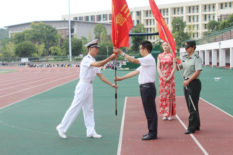 校长郭正良向长沙幼儿师范学校军训营授旗💄,各军训教官依次接旗。他向全体新生表示热烈的欢迎,向即将为本次军训付出辛苦劳动的全体教官同志们,表示衷心的感谢。他要求全体新生从军训开始去领悟、去探索职高三年如何度过;要明白自己的身份与使命;要团结互助共同成长;希望2019级同学们能不负众望🚽,以自己的拼搏努力顺利完成军训任务,向教官🥔🕵🏼‍♂️、向家长、向老师👩‍🏫、向学校交上第一份优秀的答卷。