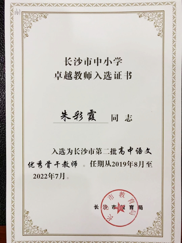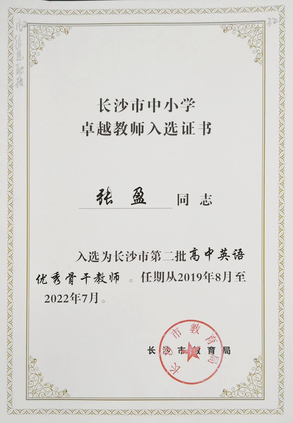 在2019年长沙市第二届卓越教师评选中,我校林静老师入选市级学科带头人; 张盈、倪军民、朱彩霞老师入选市级优秀骨干教师; 周艳、李科、林资老师入选市级教学能手。特向全校师生报喜!向获奖教师表示祝贺!