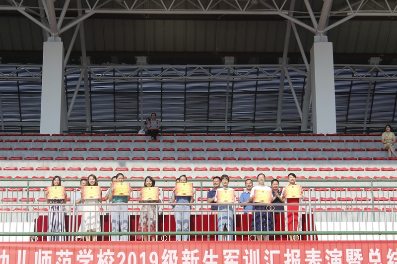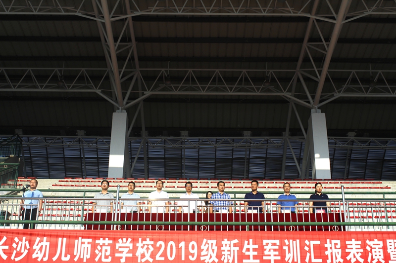 9月7日上午,长沙幼儿师范学校在职教基地田径场举行2019级新生军训会操暨颁奖典礼。1200余名新生整装列阵,昂首阔步接受检阅,圆满地结束了为期七天的军训,为自己的高中生活拉开了序幕。