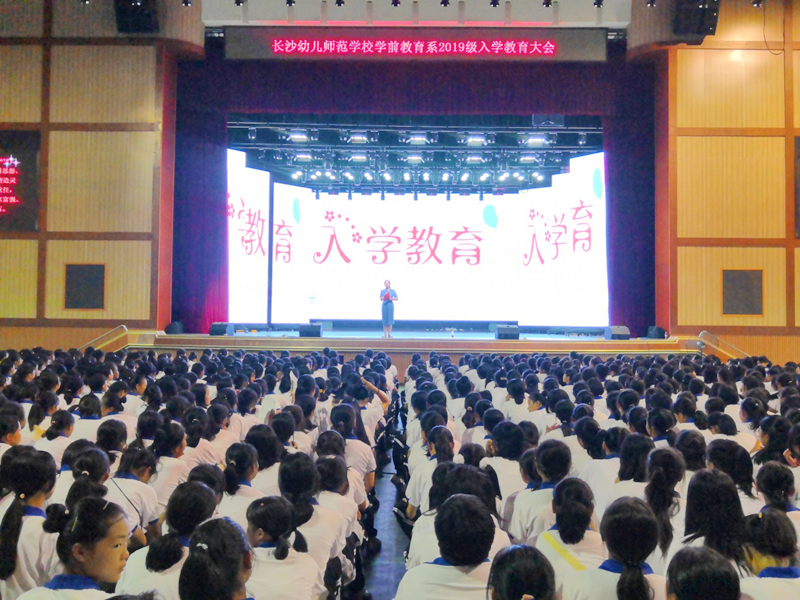 为了让新生了解幼儿园教师的岗位职责,知道幼儿园教师所需要的职业素养,帮助学生明确学习目标,端正学习态度,9月9日下午,长沙幼儿师范学校学前教育系2019级新生入学教育大会在汇美馆顺利举行。学前教育系系主任阳艳波、学前教育系教育副主任彭亮、学前教育系教学副主任闵捷以及学前教育系2019级全体新生参加了入学教育大会。